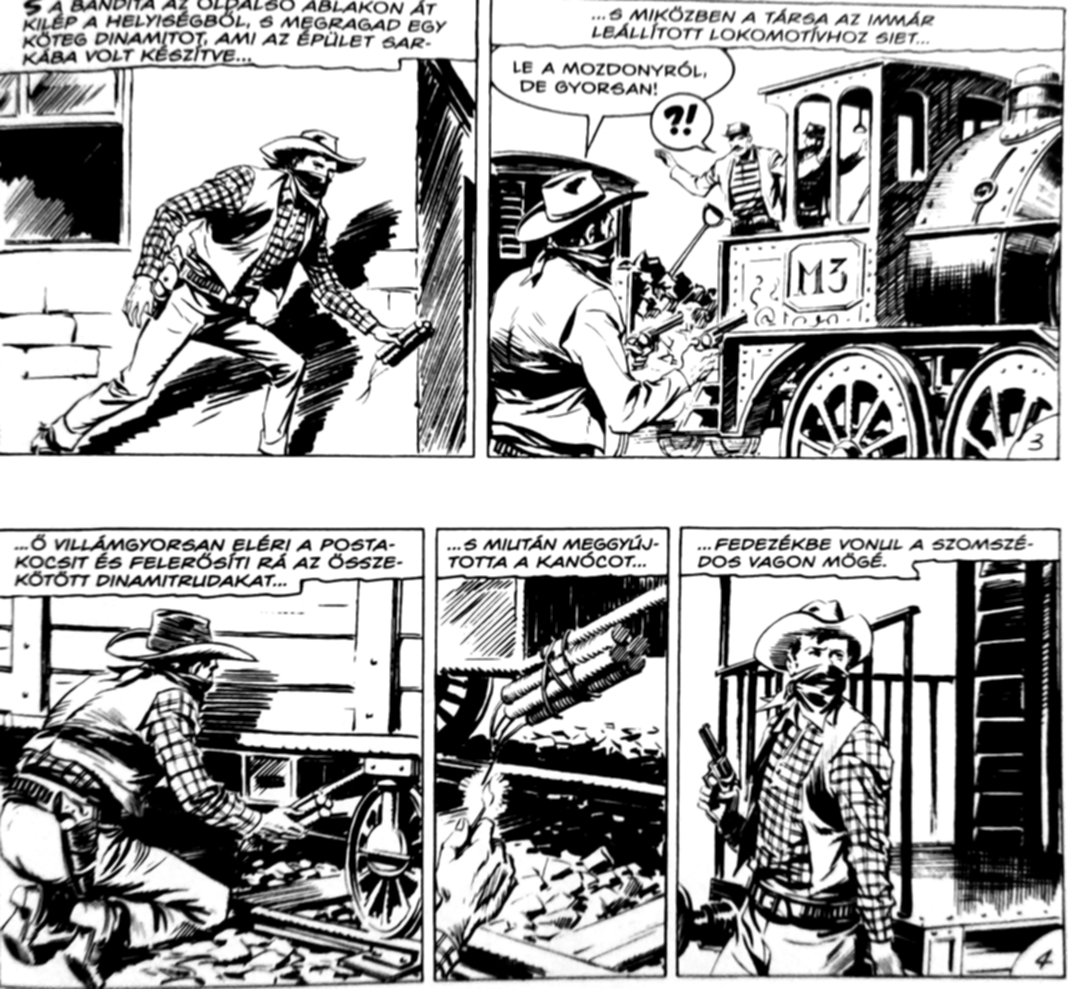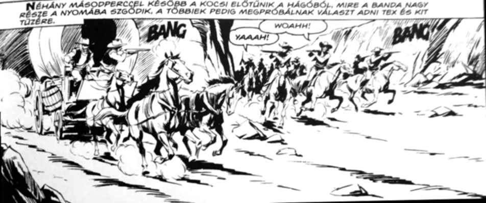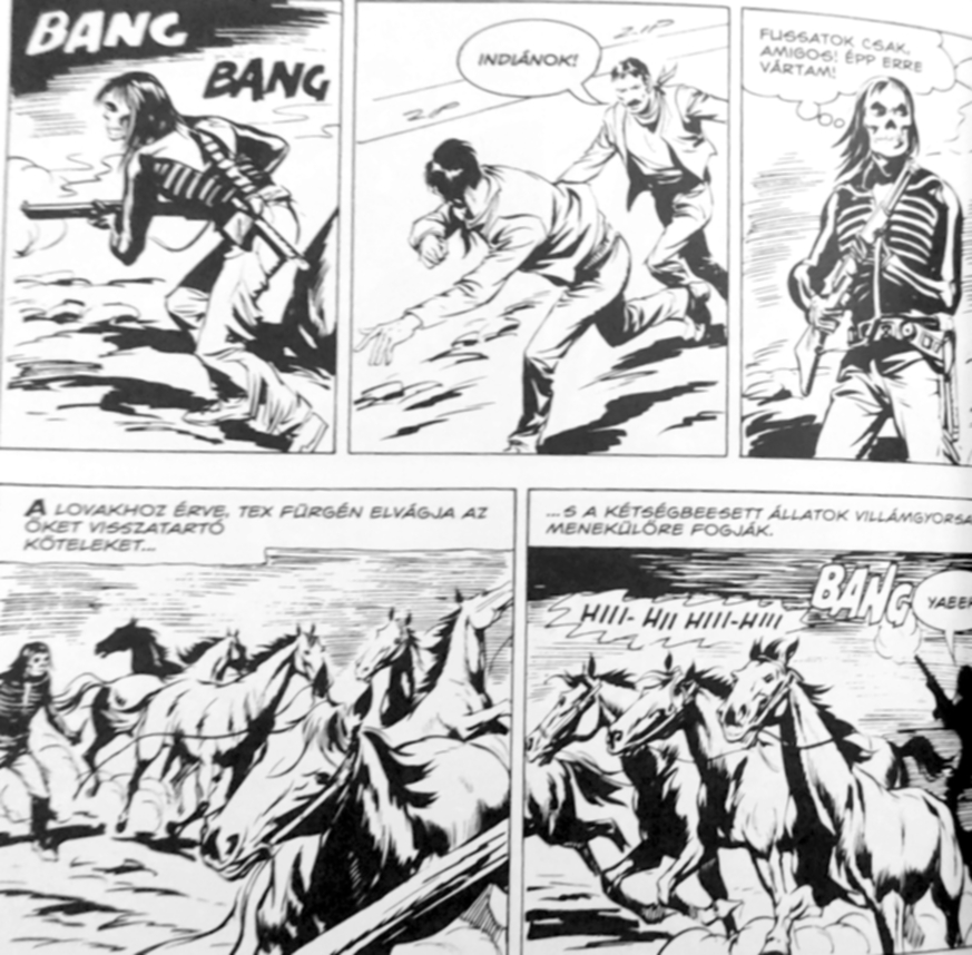 Mert minek ismételgetni a Tex sajátosságait? Amelyek ráadásul megfelelnek a sorozatot 78 (!) éve kiadó Sergio Bonelli Editore (jó, legkezdetben Edizioni Audace volt a neve) általános stílusának. Mármint a sorozatai általános stílusának.