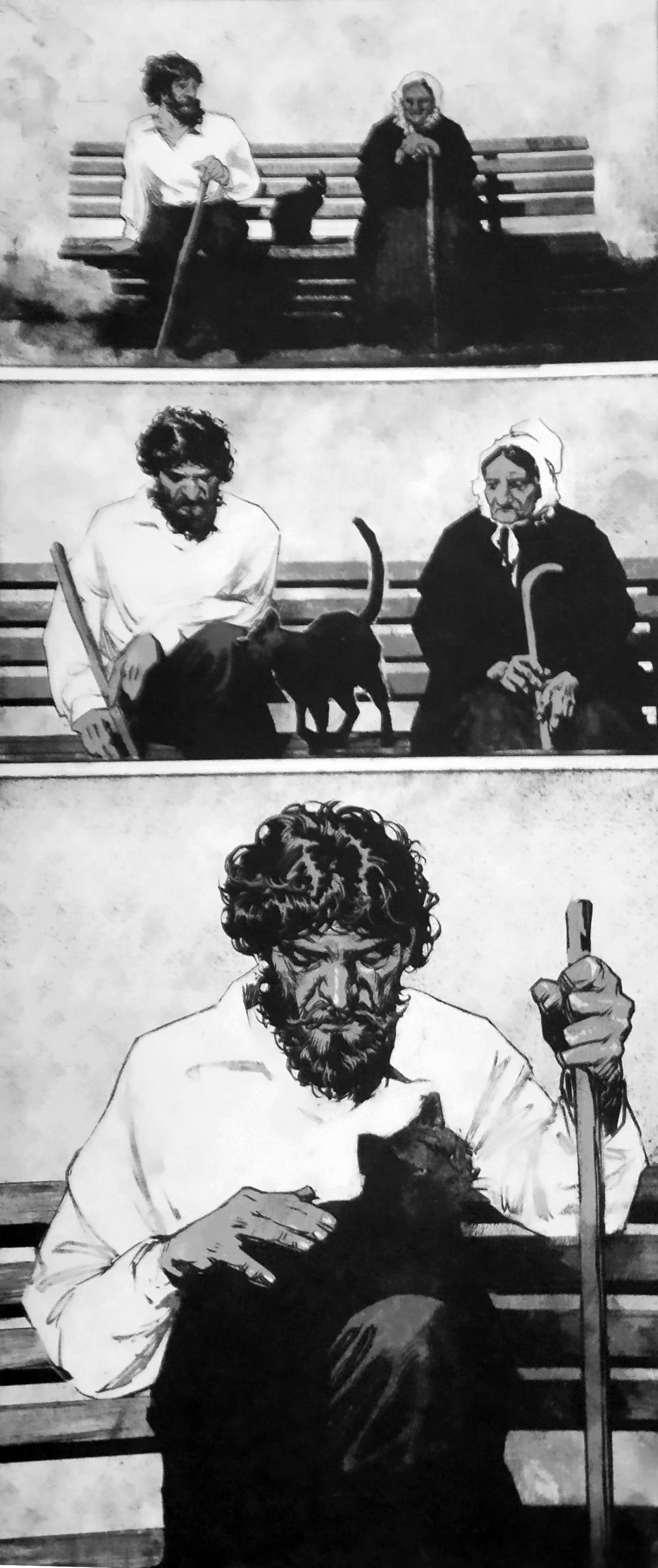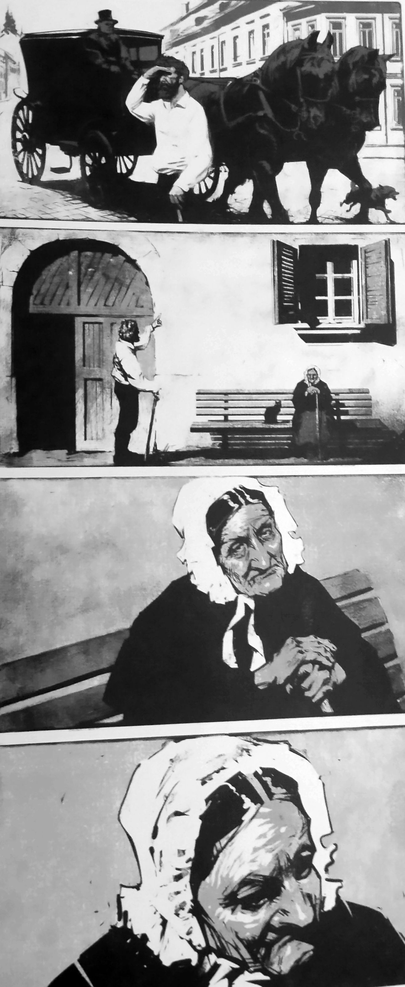 Na, ez a kép például nem sikerült, több sebből vérzik. Hiába mondtam neki, hogy a pasas bezáródott a liftbe, nem tud kijönni, az asszony kötélre kötött kosárba teszi neki az ételt, az olvasnivalót. Hm...