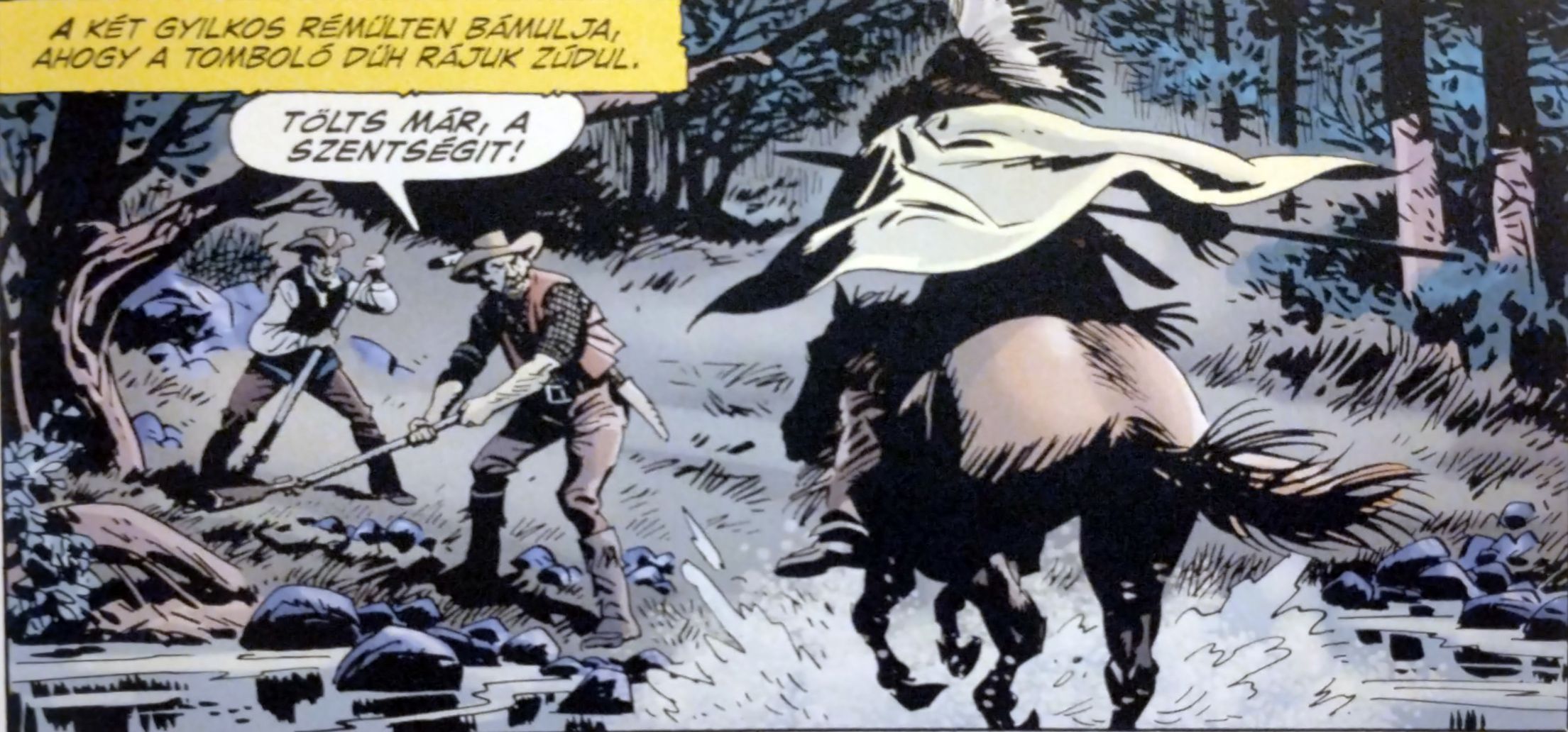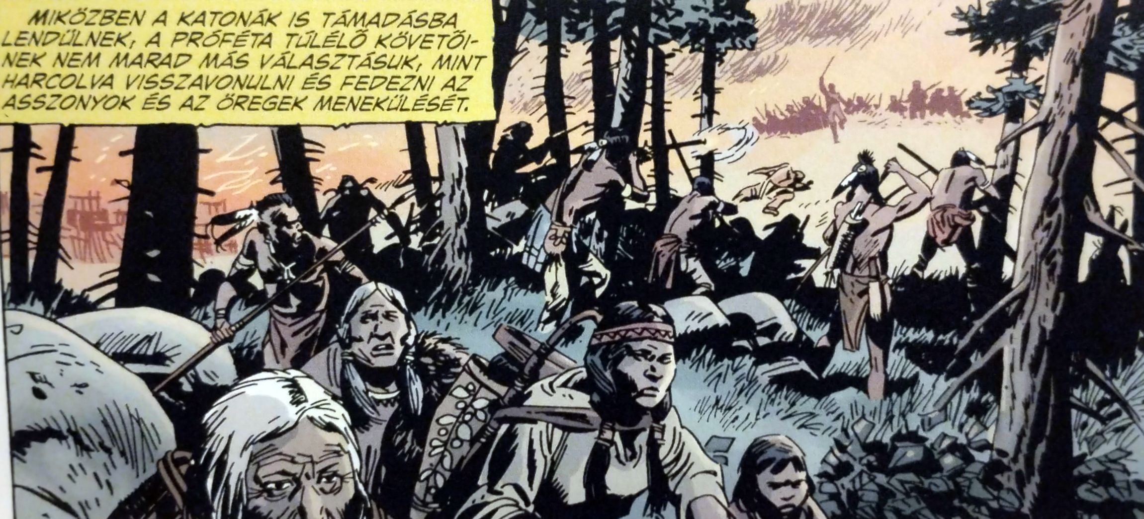 Mit mondjak még? Ja, a lényeget: csudára élveztem ezt a történetet is. Akkor is, ha valamelyest dramatizálták az amúgy is drámai valóságot. Viszont ezt jól sikerült megtenniük. Elbizonytalanodtam, mennyire része volt igazából a Prófétának abban, hogy az indián egység idő előtt összeomlott. A valóság az, hogy teljes mértékben. A képregény teljesen igazat beszél.