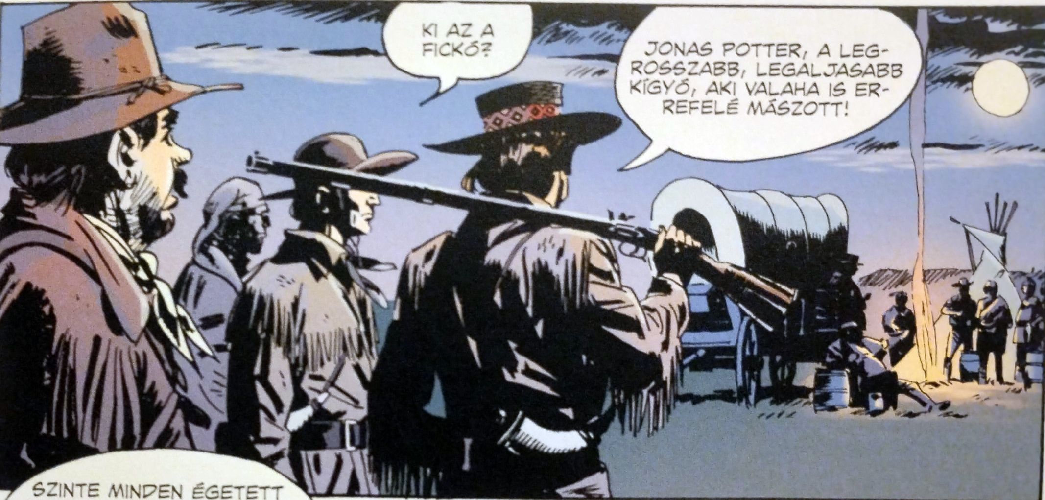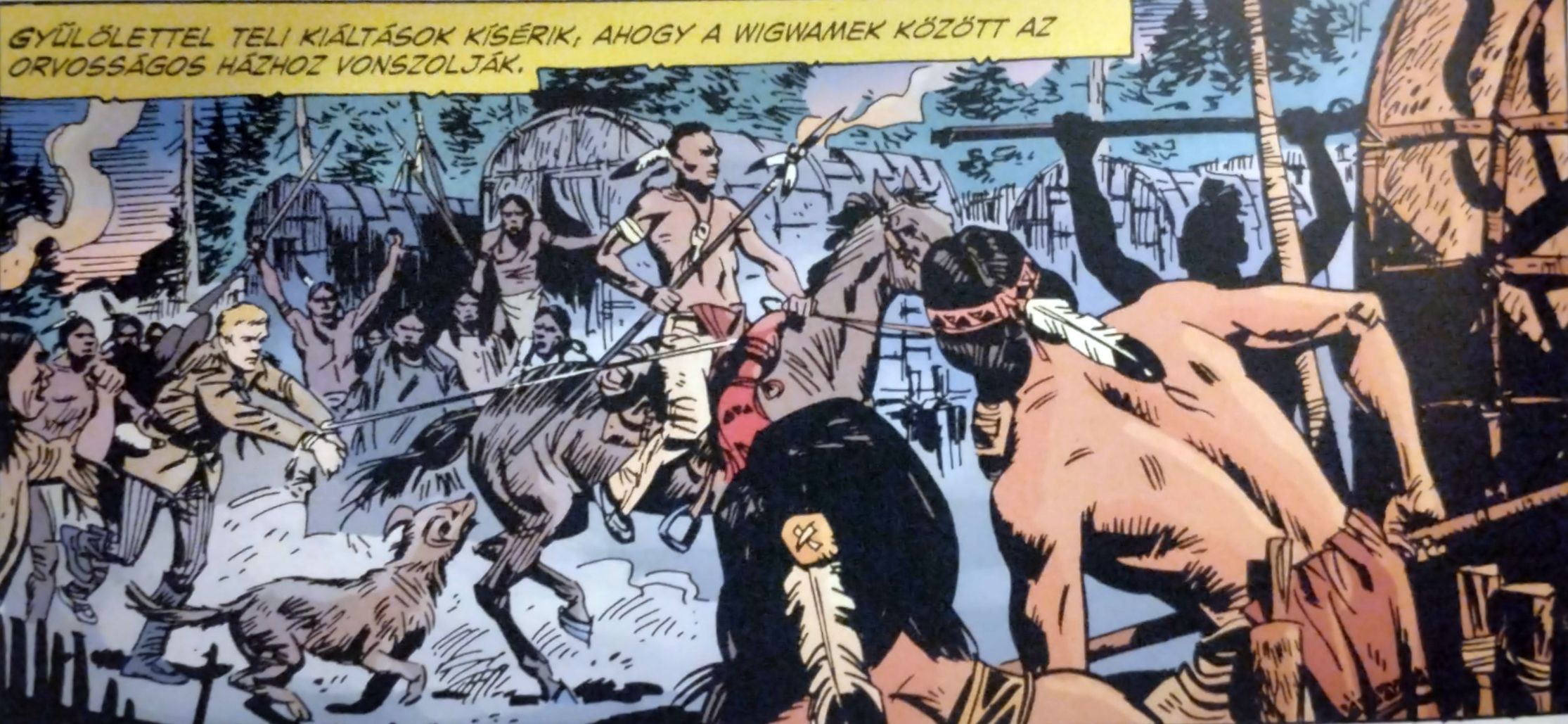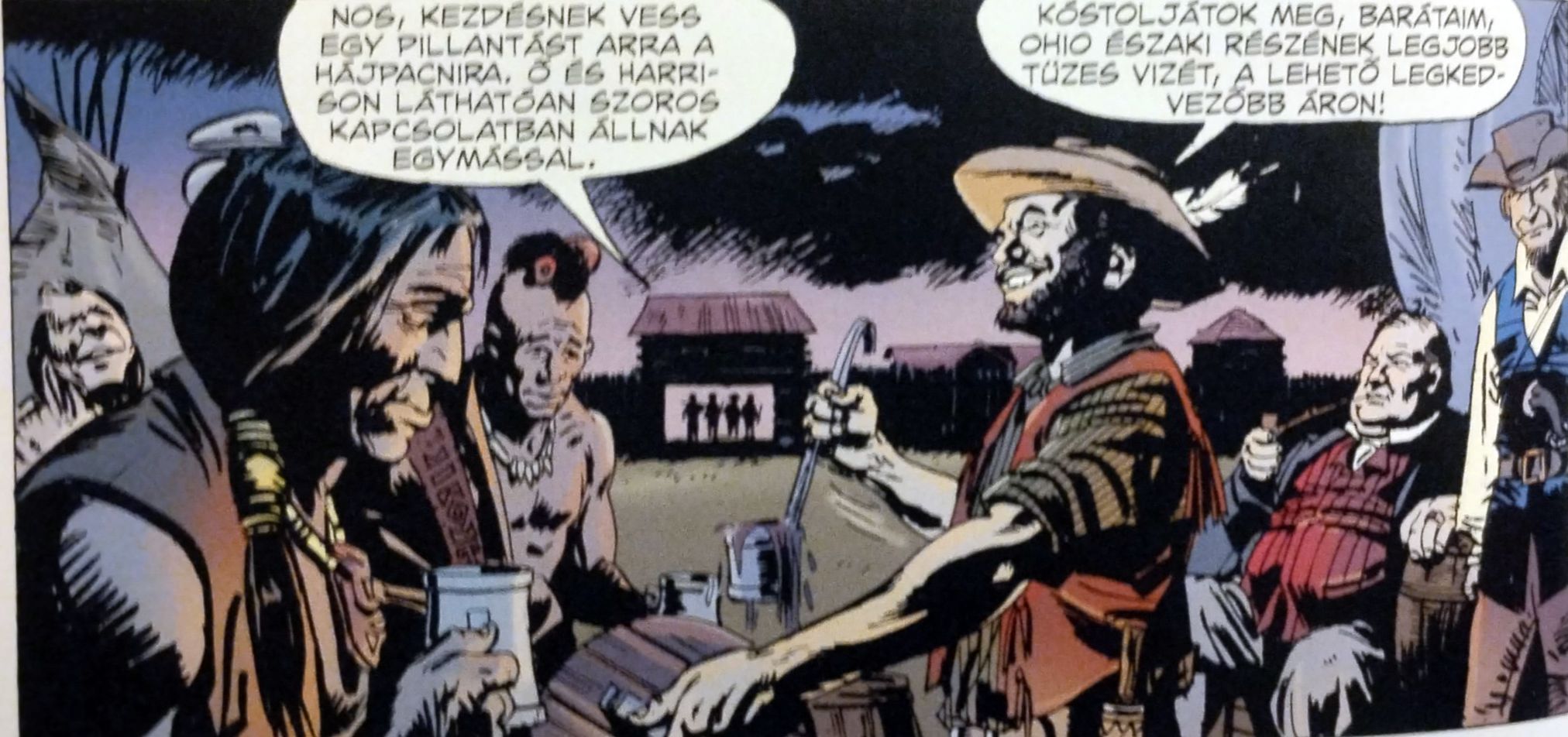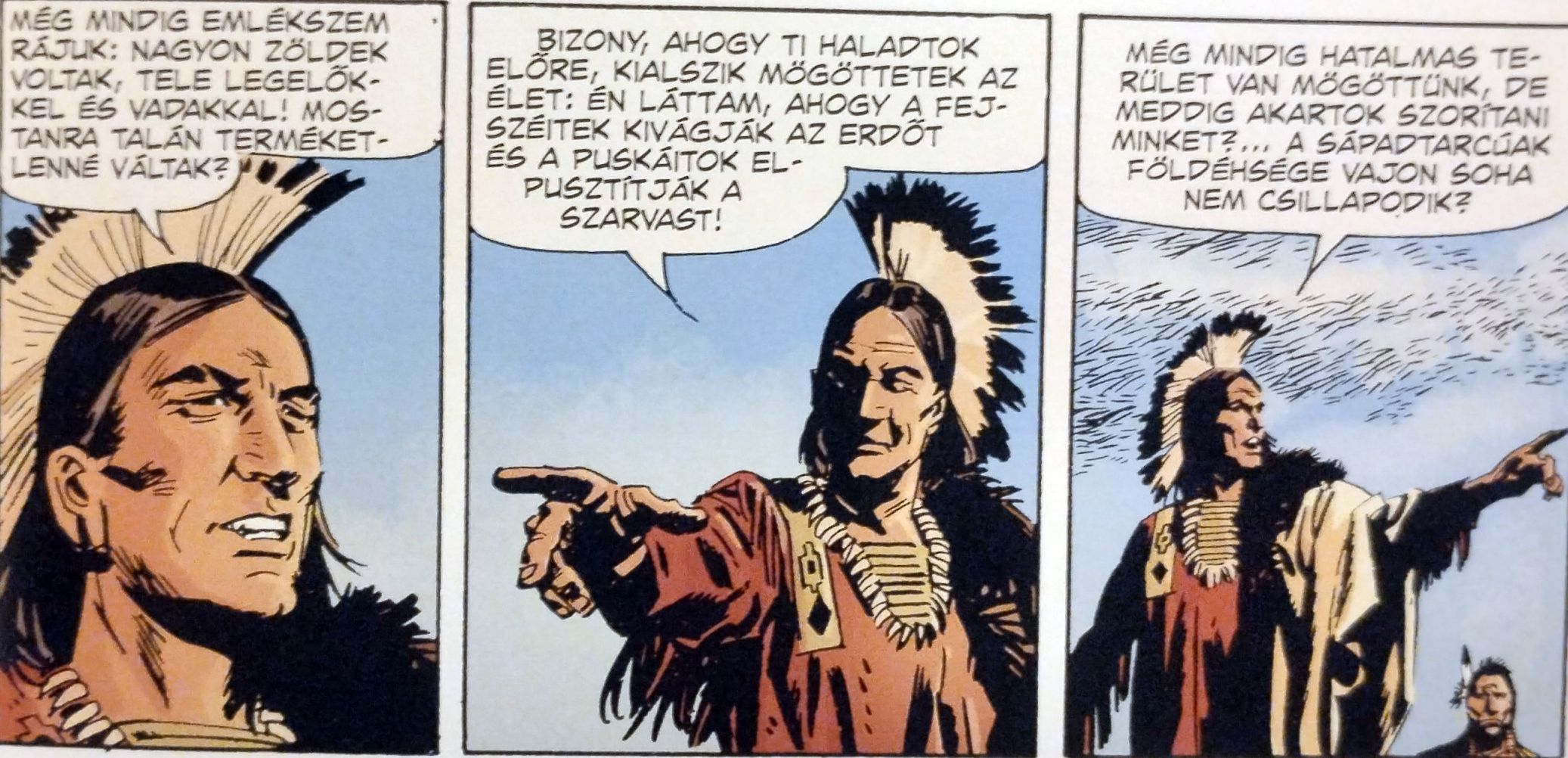 Nehogy felrójuk már ezt az alkotóknak4 Az ő hősük nem a sóni vezér, hanem a kereskedővé vedlett grafkusművész! Inkább örvendjünk, hogy sikerült az Ülő Bika (Sitting Bull) mellett talán leghíresebb, valós indiánt összehozni a képregény fiktív hősével!