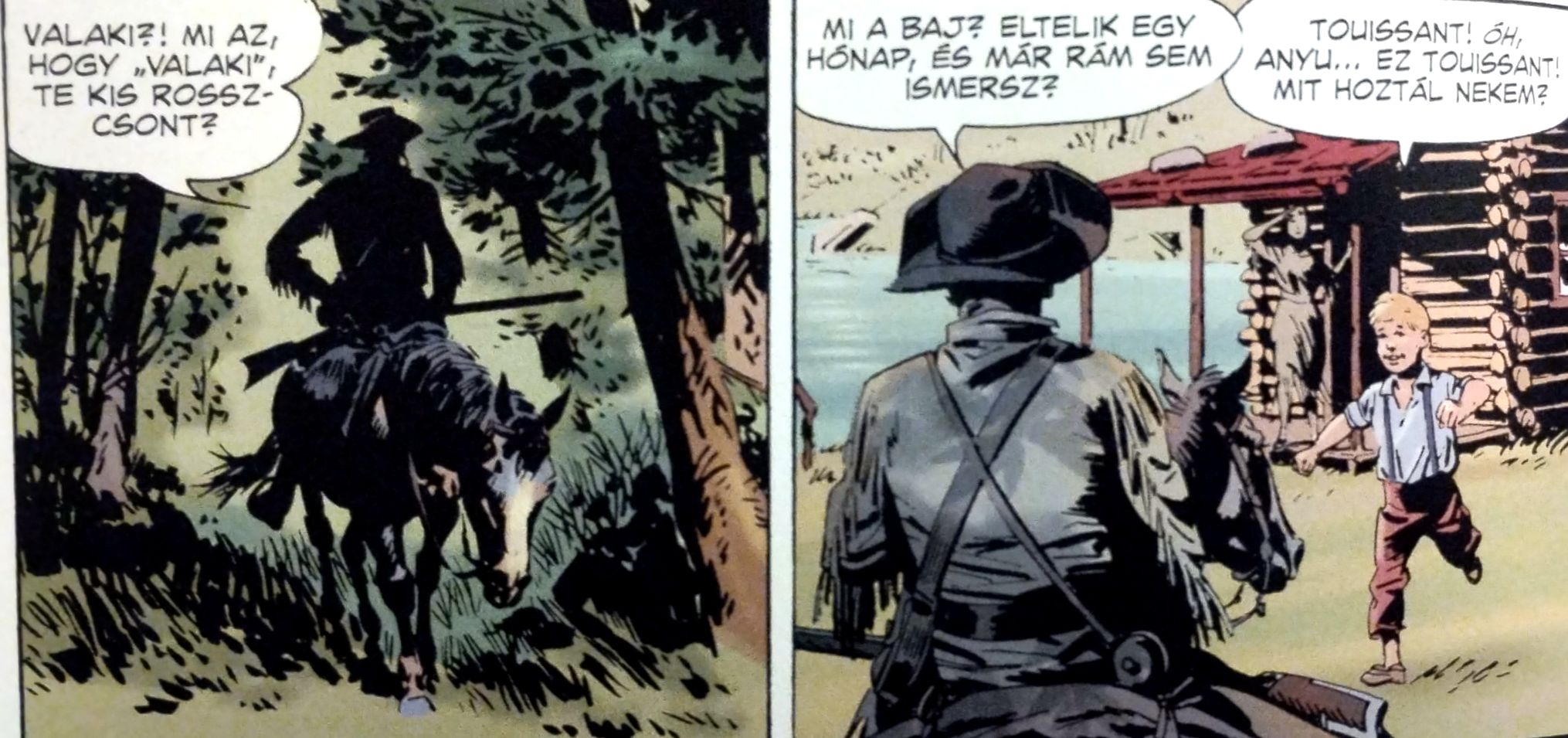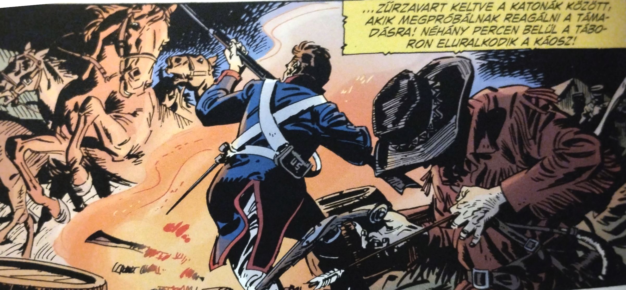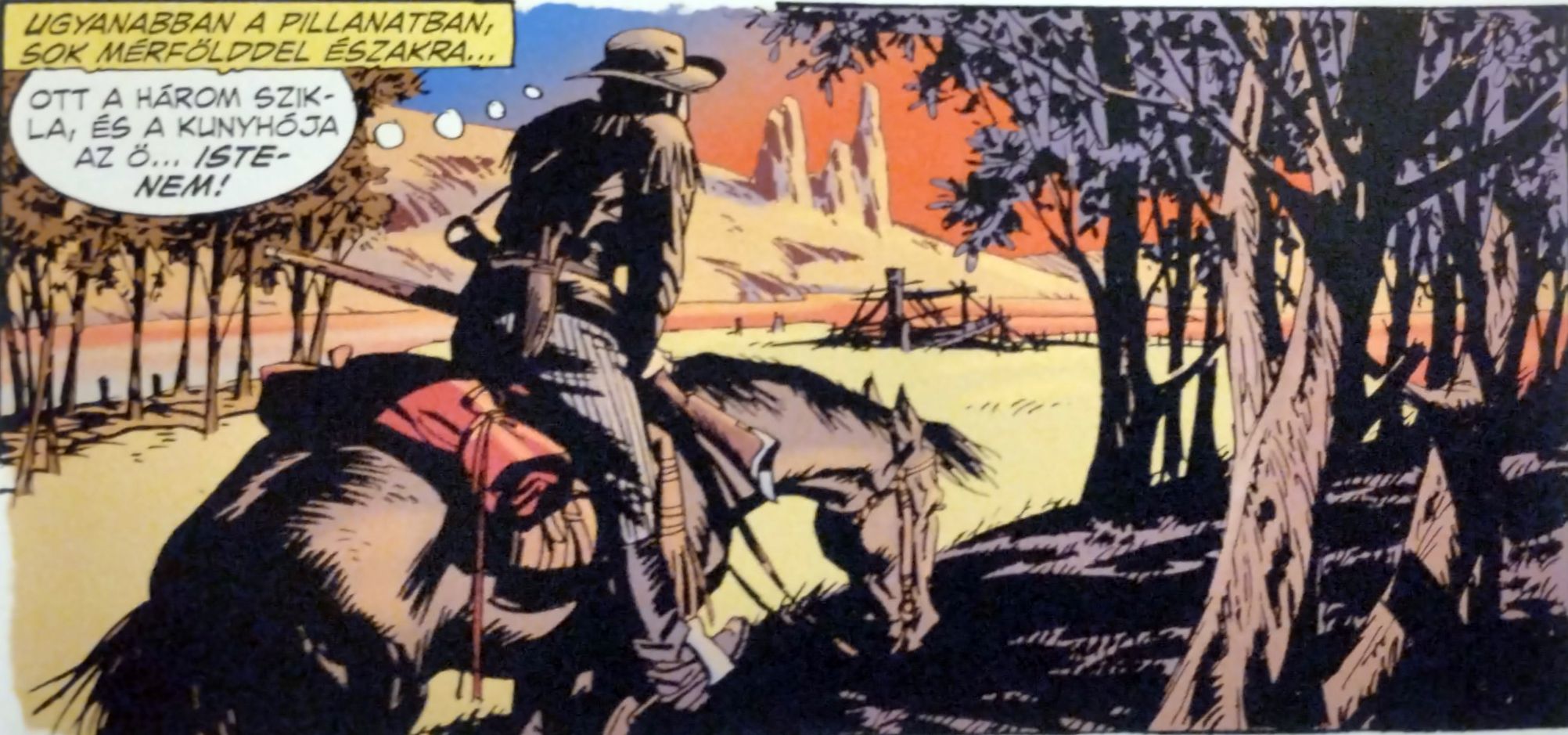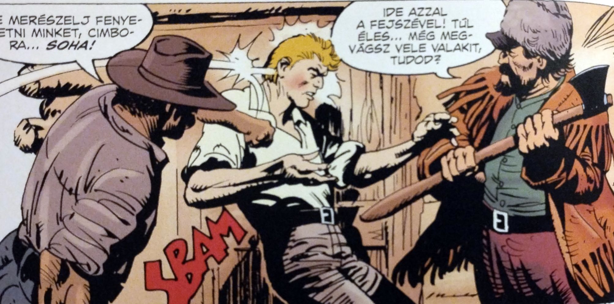 Nehogy felrójuk már ezt az alkotóknak4 Az ő hősük nem a sóni vezér, hanem a kereskedővé vedlett grafkusművész! Inkább örvendjünk, hogy sikerült az Ülő Bika (Sitting Bull) mellett talán leghíresebb, valós indiánt összehozni a képregény fiktív hősével!