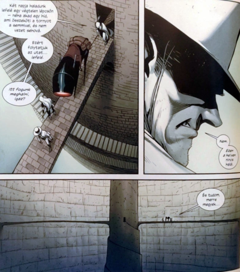 S a vicc az, hogy minden fentiek ellenére, amit az értetlenségről, érthetetlenségről mondtam, a sztori magával ragad. Komolyan beszélek. Az első tíz-húsz oldalt olvasva azt mondtam, irdatlan nagy marhaság, fárasztó az egészet, hagyom a 'csába... Aztán azt vettem észre, hogy nem hagyom mégsem, s hogy rohamléptekkel olvasom, nézegetem. Akkor is, ha talán csak a legminimumabbat fogom fel belőle, s ha oltári nagy teológiai fenntartásaim is vannak vele szemben.