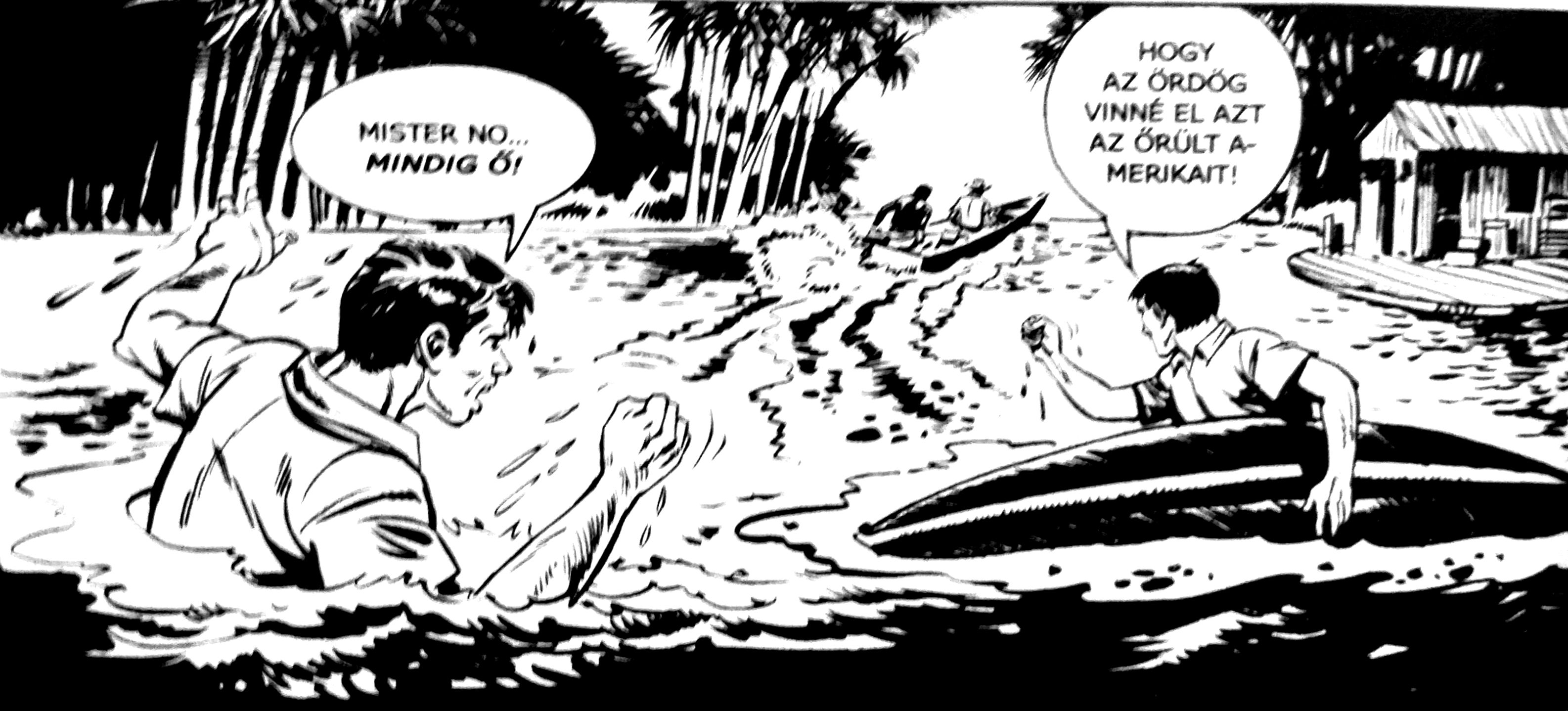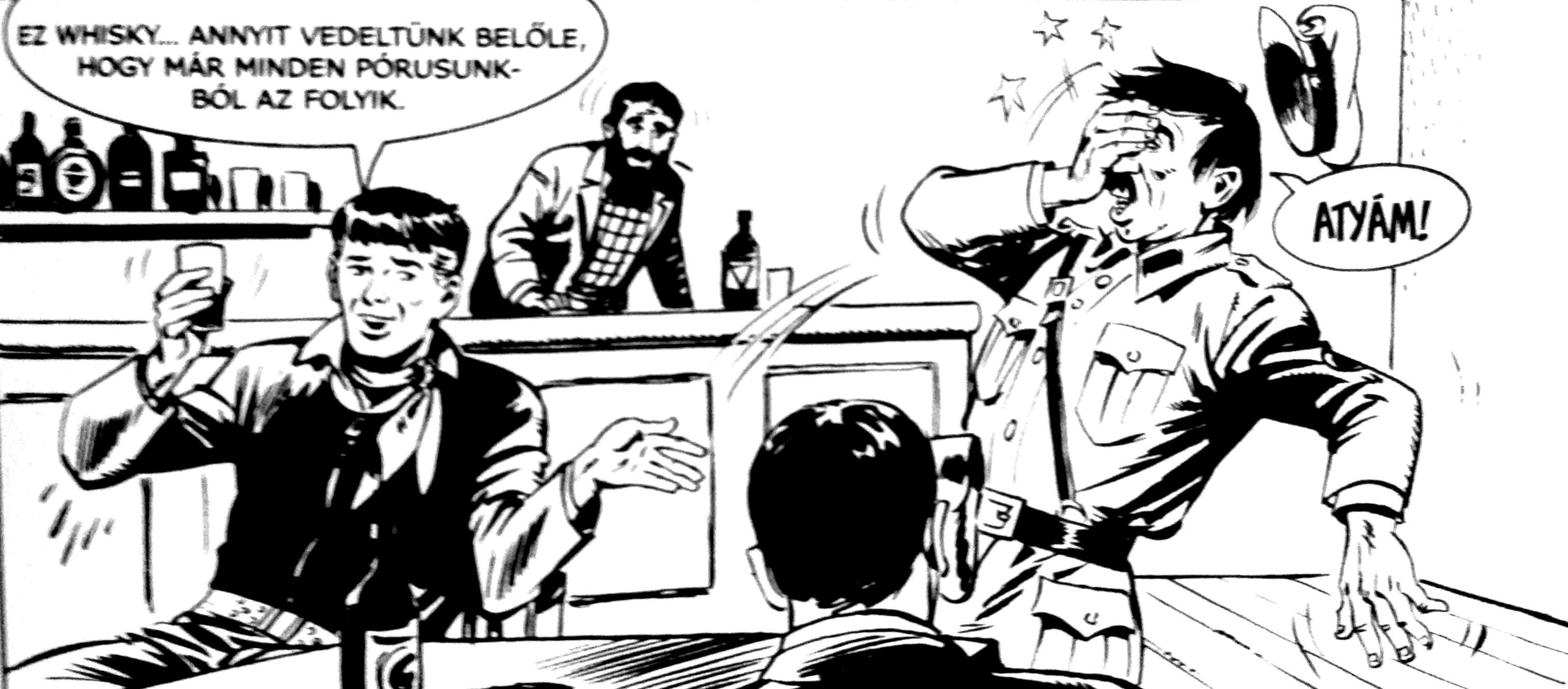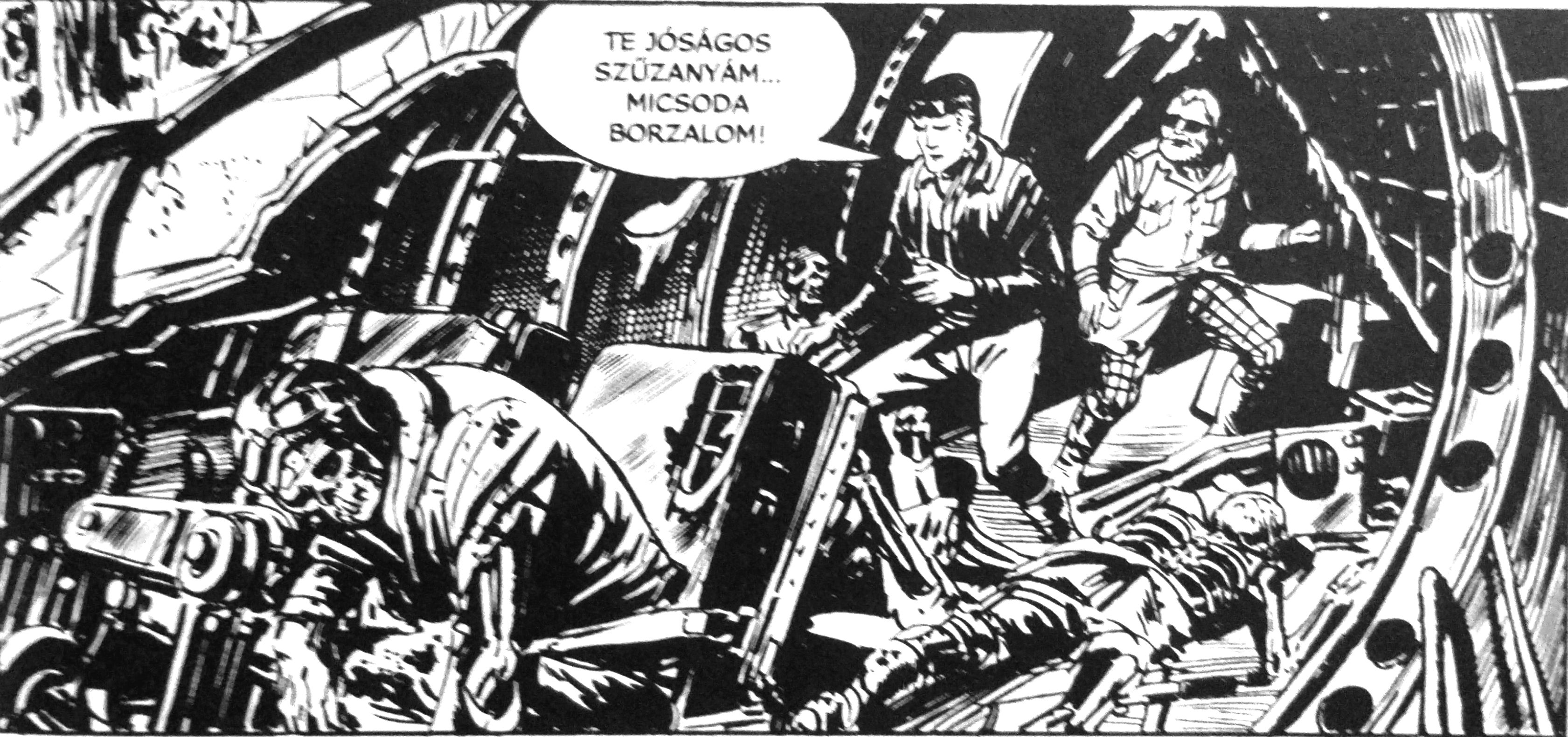 Mert nem akartalak elijeszteni a könyvtől, ezért nem az eredeti grafikákkal színesítettem ezt a bejegyzést, hanem kreáltam inkább néhány MI-s képet. De hogy elhidd, amit mondok, itt egy sor az eredeti rajzokból. Hab a zöldségtortán a feliratozás, a betűméret és -típus elképesztőn ide nem illő megválasztása. (Az, hogy itt ott ferde a kép, az én hibám.)